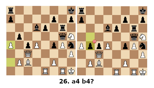 Liren, que tras la desesperada búsquedas de rupturas liberadoras se había encontrado con el obsequio de espacio y contra-juego, dio solución a todos sus problemas e, impiadoso con los desaciertos de su antagonista –más graves en esta etapa que los propios-, asumió la voz cantante con vistas a un final ventajoso en lo material o a la concreción de alguna de sus amenazas.