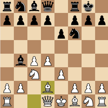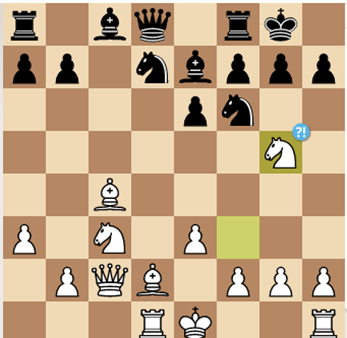 Nepo jugó la apertura sin hesitar: se enrocó y con rapidez disputó el centro. Aunque la atmósfera de expectativa y nerviosismo reinante eran ya considerables, nada podía entenderse como extraordinario después de haberse resuelto en forma sumaria sobre el tablero la tensión central. Pero, para no dar respiro y sin solución de continuidad, llegó el inesperado Cg5 en la jugada 12. Ding saltaba a la yugular negra sin muchos preámbulos.