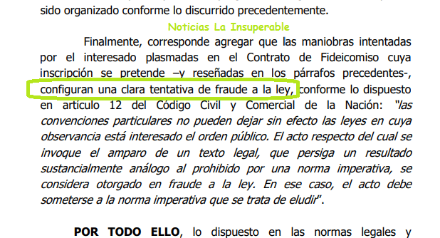 Según se desprende de la Resolución Particular 324/2023 a la que accedió Noticias La Insuperable, «las maniobras intentadas por el interesado plasmadas en el contrato de Fideicomiso» cuya inscripción se pretendía, «configuran una clara tentativa de fraude a la ley«.