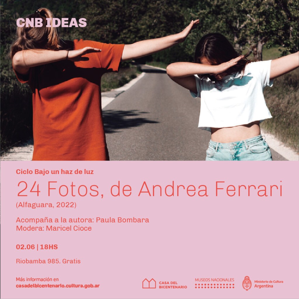 Este viernes 2 de junio, con entrada gratuita, en la Casa Nacional del Bicentenario, se presenta 24 fotos, de Andrea Ferrari (Alfaguara, 2022), una novela que construye un mundo vigoroso a partir de 24 fotografías que no están en el libro pero los lectores ven.