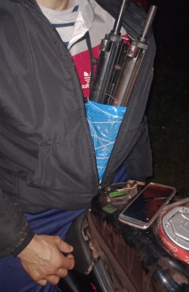 Se trata de dos subfusiles FMK-3 que el motoquero trasladaba ocultos dentro de la campera.