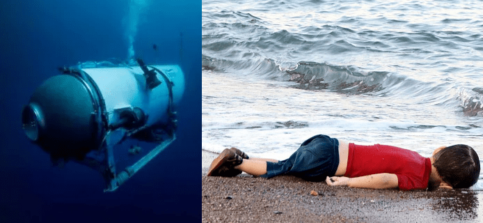 Cuatro días más tarde, es decir el 18 de junio, la noticia de los migrantes en el Mediterráneo pasó a segundo plano porque cinco millonarios a bordo de un sumergible llamado Titan habían desaparecido camino a las profundidades del océano, donde esperaban ver los restos del Titanic. Y así los medios concentraron su mirada en los acaudalados que pagaron 250 mil dólares para ver un barco hundido y se olvidaron de los 500 migrantes desaparecidos.