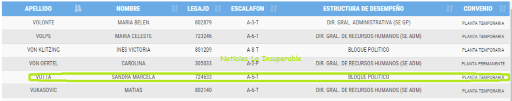 Como asesora de Campagnoli, tiene un contrato con el Honorable Congreso de la Nación, dentro de la Planta Temporaria, con la categoría A-5-T.