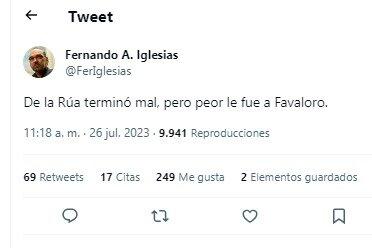 Fernando Iglesias a Larreta: «De la Rúa terminó mal, pero peor le fue a Favaloro»