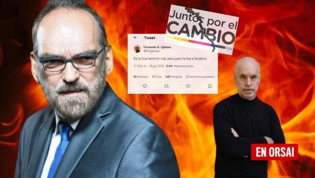 El diputado de Juntos por el Cambio, Fernando Iglesias, tomó una posición contundente para defender a Patricia Bullrich después de que el jefe de Gobierno, Horacio Rodríguez Larreta, cuestionara los comentarios de la exministra, comparándolos con la gestión del expresidente Fernando De la Rúa.
