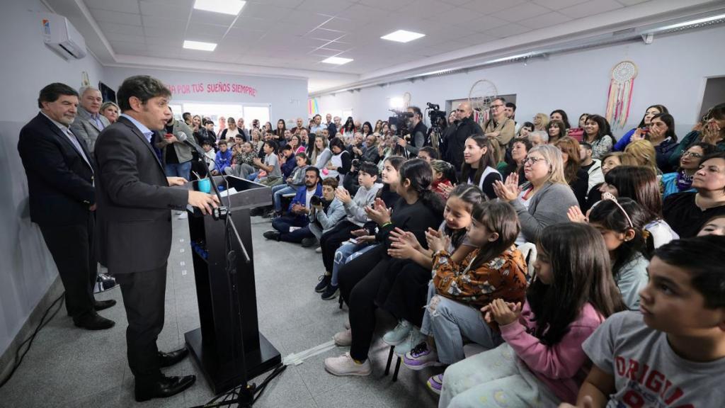 El gobernador de la provincia de Buenos Aires, Axel Kicillof, aseguró que «la derecha tiene muchos candidatos pero un solo proyecto, que es quitar derechos», al inaugurar el nuevo edificio para el Centro Educativo Complementario N° 802 en la ciudad de Berisso.
