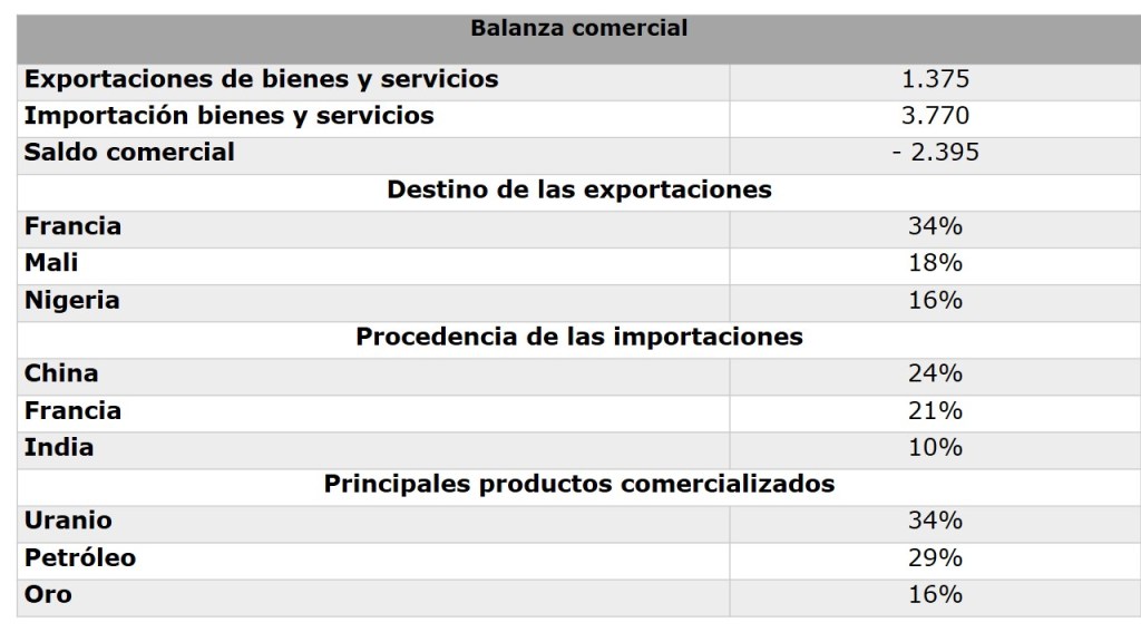 Níger: principales indicadores económicos 2022 (en millones de U$S)