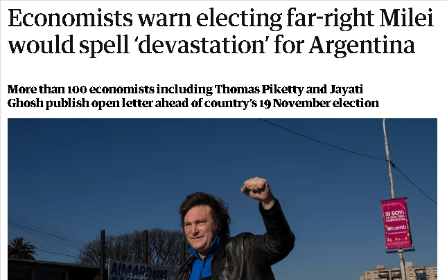 El diario británico The Guardian difundió una carta firmada por más de un centenar de economistas, quienes alertaron sobre el efecto «devastador» para la Argentina, en caso de acceder al poder el candidato libertario.