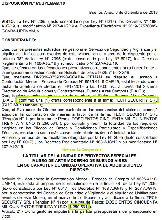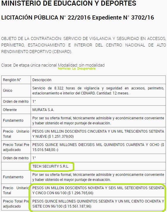 Los contratos obtenidos por TECH SECURITY con distintos organismos encabezados por el PRO son frecuentes.