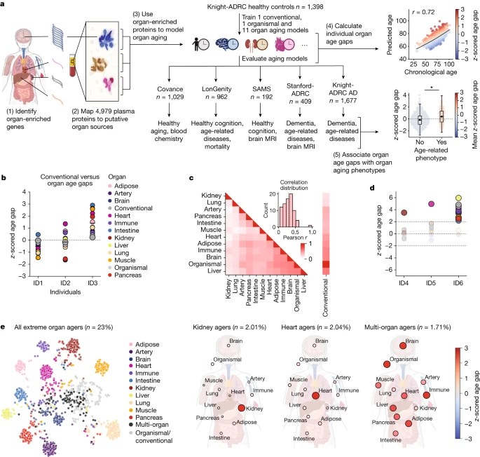 Mediante un algoritmo desarrollado por ellos, los investigadores analizaron los niveles de miles de proteínas en la sangre, identificando cerca de 858 proteínas específicas de órganos. Estas proteínas sirven como marcadores del envejecimiento acelerado de órganos y su susceptibilidad a enfermedades y mortalidad. Por ejemplo, un envejecimiento acelerado del corazón se asoció con un riesgo 2,5 veces mayor de insuficiencia cardíaca, mientras que los cerebros envejecidos tenían más probabilidades de sufrir deterioro cognitivo.