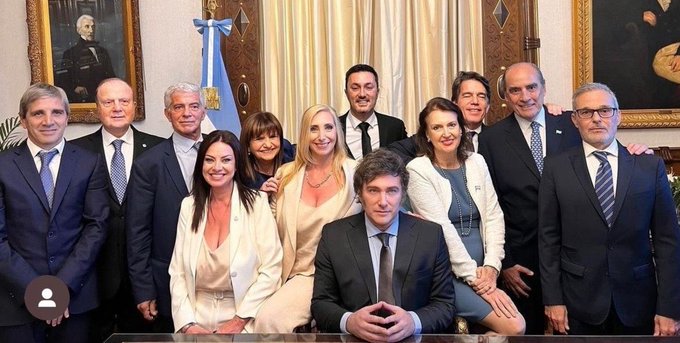 Tras la jura de ministros no transmitida, desde presidencia se brindó una imagen oficial del presidente, su hermana y la plana ministerial. En la misma eran notorios los cambios del rostro de los Milei. Desde Twitter no cesan los comentarios: