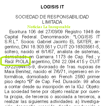 El punto es que LOGISIS IT SRL resultó ser una empresa fundada en 2009 por el propio Raúl Piola junto a su socio Gabriel Jacinto El Sayer.