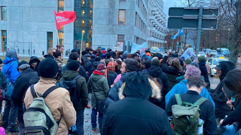 En Berlín, unas 100 personas se congregaron frente a la embajada argentina con carteles como «Argentina no se vende» o «La democracia está en peligro».