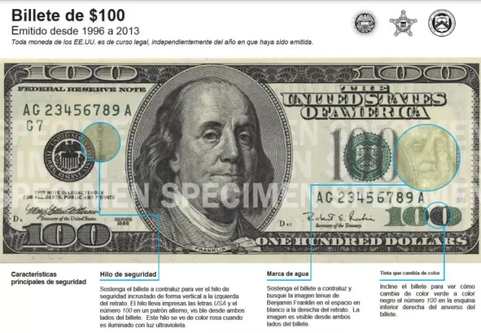 Justamente, su validez para el mercado ilegal rige en las medidas de seguridad que adoptaron para este tipo de billete. Es decir, son muy difíciles de falsificar, cuestión que impusló la Oficina de Grabado e Impresión de billetes de los Estados Unidos.