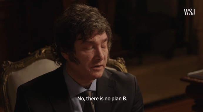 En tanto, sobre si tenía «un plan B», fue taxativo: «No hay plan b, no hay plan B para hacer las cosas bien. Hacés las cosas bien o las hacés mal. Porque si el plan B es hacer las cosas más o menos o negociar… esa es la historia de Argentina, así estamos», demostrando el poco pragmatismo con el que cuenta y que puede jugarle en contra a los argentinos.
