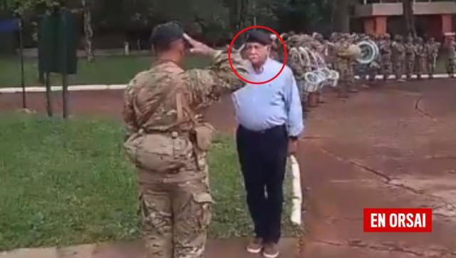 El veterano de guerra de Malvinas, que cuenta con tres condenas, recibió el tributo como si se tratara de un héroe. Las imágenes que circulan en las redes sociales muestran a Losito descendiendo de un automóvil militar, recibiendo saludos y cuadrándose ante elogios. Un militar, vestido de fajina, anuncia su llegada como si fuera un veterano de guerra digno de admiración.