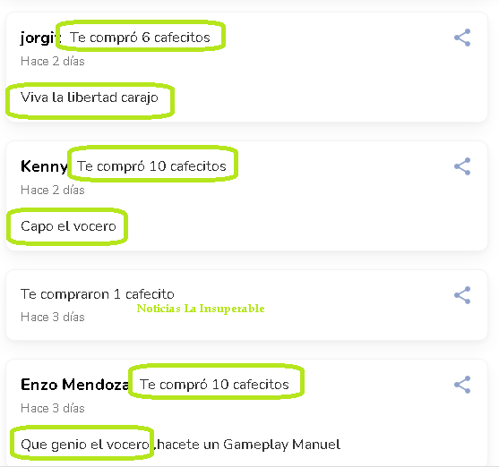 Cafecito es una plataforma de crowdfunding en Argentina, generalmente destinada a creadores de contenido, los cuales reciben colaboraciones desinteresadas de su público.