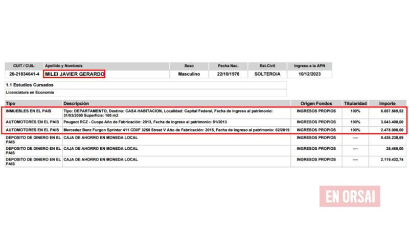 De esta manera, sumando los valores reales de estos tres bienes, todos regalados por su padre “maltratador” y “torturador”, se puede estimar que el patrimonio real del presidente Milei rondaría los 200 millones de pesos. Es decir, 200 mil dólares. Patrimonio que ningún hijo de un colectivero de clase media, como se vendió ante la sociedad, podría tener. Por eso al igual que su hermana Karina, lo devaluó. Para no levantar la perdiz y mostrarse como un antisistema.