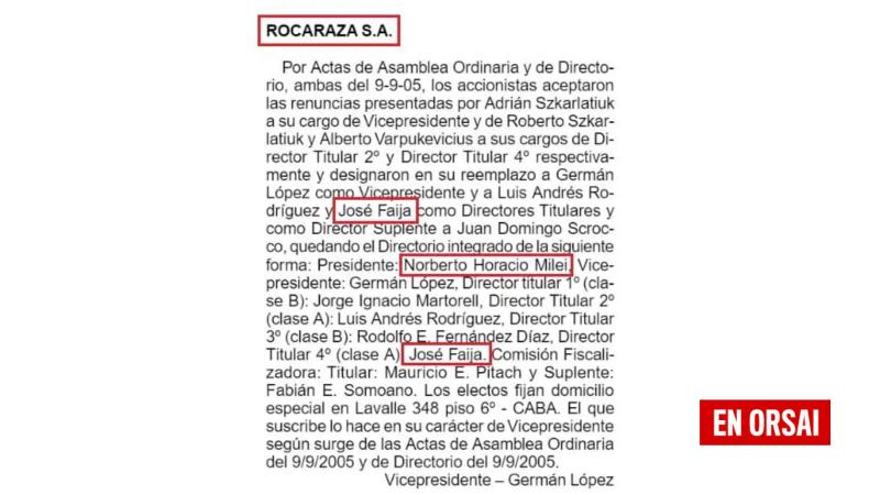 En el 2004, Milei padre tomó posesión de la firma Campo La Poderosa S.A. dedicada al cultivo de algodón, trigo y maíz. Campo que hasta el día de la fecha el “progenitor” del presidente visita. En esta empresa, figuran también como directores Alicia Lucich, madre de Milei y su hermana Karína, actual secretaria General de la Presidencia, encargada según dicen, de manejar todo el negocio de la familia. Por eso su apodo “El Jefe”.