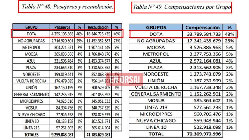 Por otro lado, un informe de la Auditoría General de la Nación (AGN), que investigó los fondos girados a todas las empresas de transporte y al Grupo Dota entre el 1 de enero del 2014 y el 30 de septiembre del 2017 concluyó: