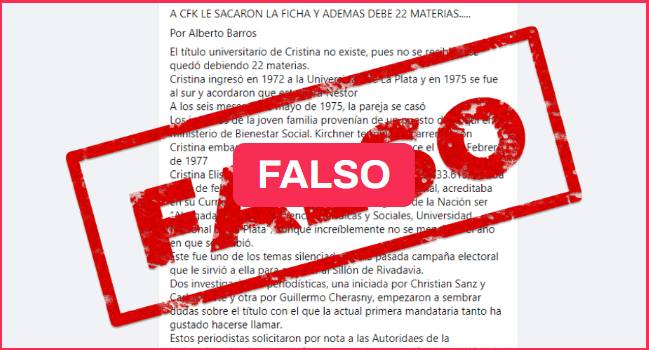 Recordemos que durante años, Cristina Kirchner fue objeto de una intensa persecución mediática y política donde cuestionaban la autenticidad de su título universitario de abogada. Sin embargo, sobre esto no quedaron dudas cuando la Universidad Nacional de La Plata (UNLP) lo desmintió en 2007 a través de un comunicado firmado por su rector y el decano de la Facultad de Derecho.