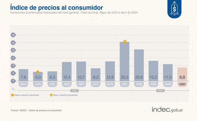 La inflación de abril fue de 8,8 por ciento.