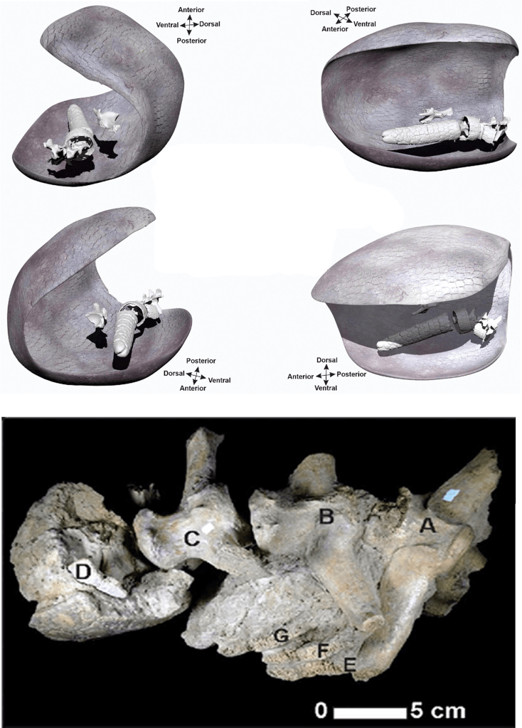 La conclusión de los expertos surge de una serie de detallados y exhaustivos estudios desde múltiples enfoques que se realizó sobre el esqueleto incompleto de un gliptodonte perteneciente al género Neoesclerocalyptus –pariente de las mulitas y peludos actuales y extinto hace 10 mil años– con partes articuladas, compuesto por las vértebras y el tubo caudal, o estuche de la cola. El fósil fue hallado por Guillermo Jofré, autodidacta de la paleontología que tiene a su cargo el Repositorio Paleontológico Ramón Segura de Merlo, a quién le llamaron la atención las singulares características que presentaba: múltiples rayitas en los huesos y osteodermos –placas óseas– que no parecían ser aleatorias, como pueden ser las marcas del ataque de otro animal o la acción de roedores sobre los huesos fosilizados, sino que seguían patrones uniformes. Gracias a la idoneidad que adquirió en diversos cursos dictados por los profesionales platenses, Jofré extrajo el tocón de tierra donde se encontraban los restos cuidando cada detalle para que no se pierda información valiosa y los anotició sobre su hallazgo.
