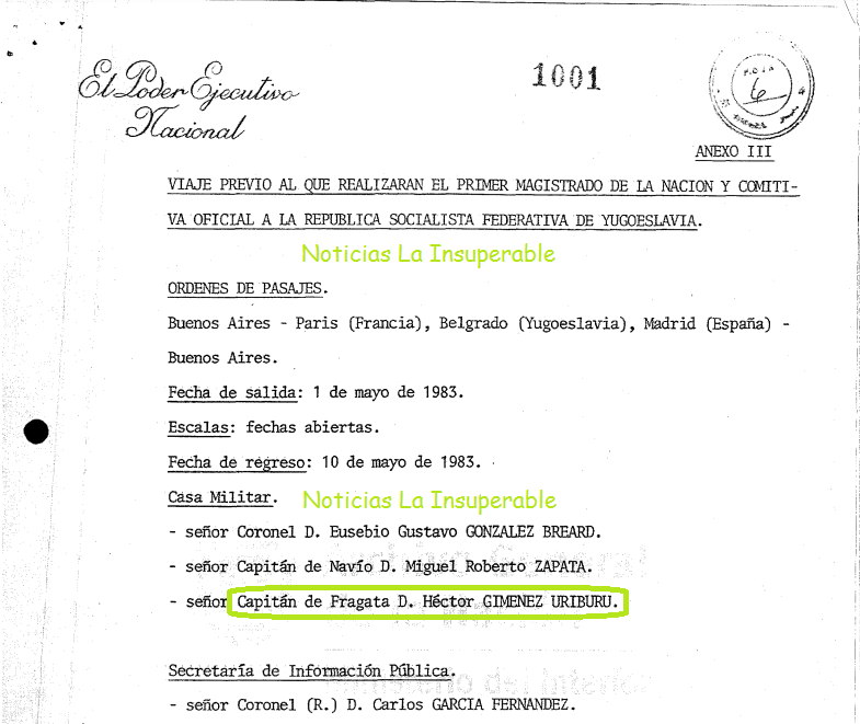 Ya hace tiempo, también, te dimos la primicia sobre la figura del padre del Juez, Héctor Giménez Uriburu, militar y funcionario de la última Dictadura, quien formaba parte de la comitiva que acompañaba a al presidente de facto, Reynaldo Bignone.