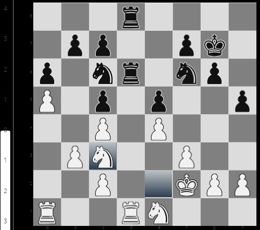 La posición había llegado a la igualdad. Para las blancas, la única ventaja que sobrevivía era la de tiempo: algo más de treinta minutos, aunque duró lo que un suspiro. Ahí nomás el campeón mundial se tomó nada menos que veinticuatro minutos para jugar 17. Td1 que, de acuerdo con los análisis modulares, no estaba entre las mejores. Así las cosas, al llegar al vigésimo movimiento la paridad se había hecho absoluta.