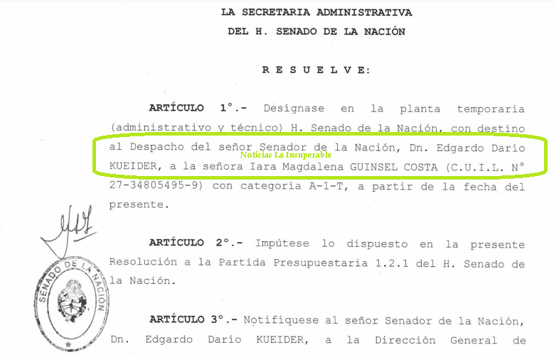 El dueño del otro 50% del paquete accionario, sería un monotributista categoría “C”. Según consta en la denuncia que origina la causa, en las planillas de expensas, en lugar de aparecer la empresa BETAIL como propietaria, quien está es Iara Guinsel Costa, quien es secretaria de Kueider en el Senado de la Nación desde el 26 de febrero de 2024.
