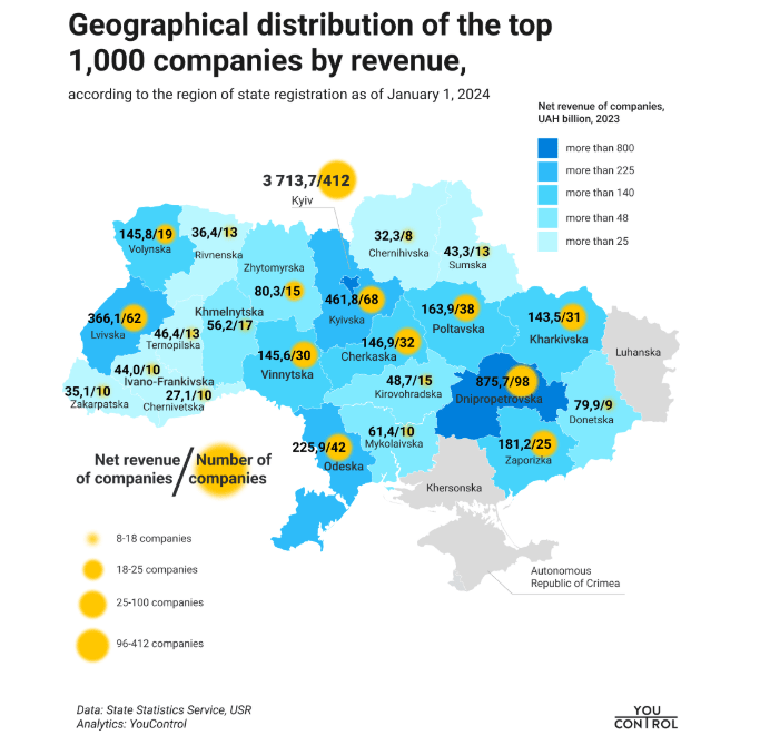 La disputa esta entonces centrada en quien se queda con estos recursos, necesarios para Europa, pero son la carta de pago a los créditos americanos. En 2023 se hizo un relevamiento de las 1.000 principales compañías ucranianas. La mayoría de estas empresas están arraigadas en los sectores de los combustibles, la energía y la agricultura, predominantemente en el área metropolitana de Kiev. Los sectores más representados de las grandes empresas incluyen la industria alimentaria (139 empresas), el petróleo y el gas (115), la energía (104) y la agricultura (97).