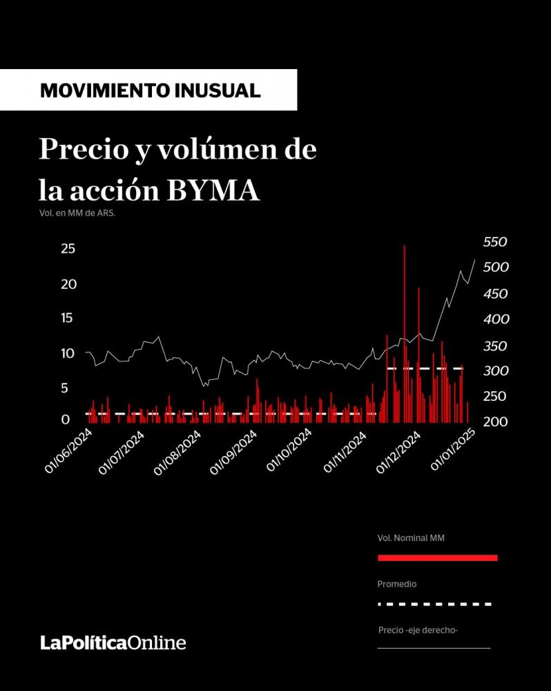 Este anuncio, sin embargo, llegó acompañado de movimientos bursátiles que desataron sospechas de posibles maniobras de insiders. En las semanas previas, el volumen de operaciones de ByMA creció un 527%, un fenómeno atípico en un mercado que solía comportarse con estabilidad. El alza del precio de sus acciones, que alcanzó un 14,5% tras el anuncio, refuerza las especulaciones sobre el uso de información privilegiada para obtener ganancias millonarias.