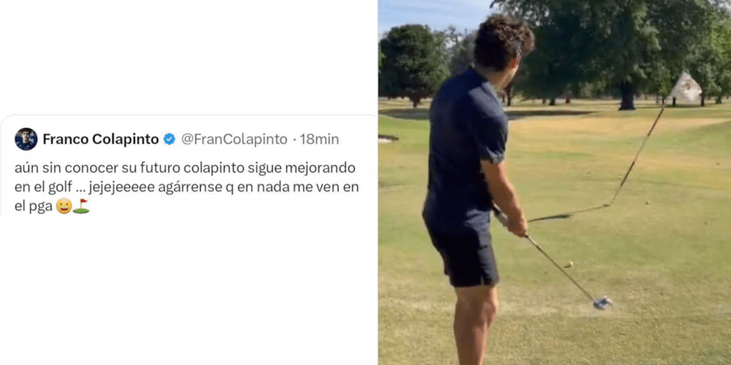 Como si fuera un periodista relatando la noticia, indicó: “Aún sin conocer su futuro, Colapinto sigue mejorando en el golf”. Y luego, ya en primera persona, agregó: “Agárrense que en nada me ven en el PGA -Asociación de Golfistas Profesionales-”, prometió.