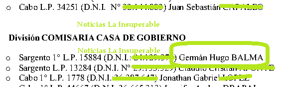El policía en cuestión fue identificado como Germán Hugo Balma, de 50 años, Sargento Primero de la Policía Federal y que presta servicios de custodia del ministerio de Seguridad que encabeza Patricia Bullrich. Balma, según registros a los que accedió Noticias La Insuperable, formaba parte de la División Comisaría Casa de Gobierno.