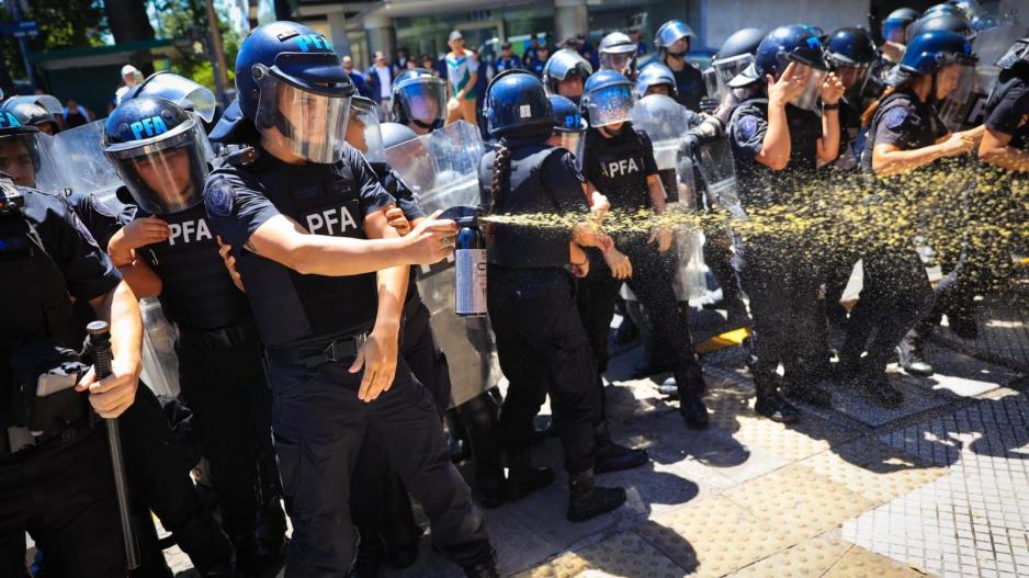 La represión a los jubilados frente al Congreso el día anterior y la violencia desatada en esta manifestación evidencian, según los gremios, un gobierno que, sacudido por el escándalo de la Estafa Cripto, busca mostrar fortaleza acentuando su carácter represivo.