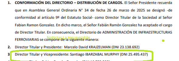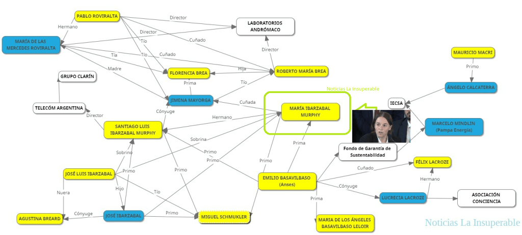 El mencionado Emilio Basavilbaso, luego designado por Macri como Titular de la ANSES, es también primo hermano de María Ibarzabal Murphy, la flamante secretaria Legal y Técnica de Milei. Basavilbaso, durante su gestión, aprobó una polémica inversión de 10 millones de dólares de fondos públicos en el grupo de medios de Magnetto, el Grupo Clarín, al que casualmente entró a trabajar una vez finalizada la función pública. “Tengo el agrado de anunciarles que Emilio Basavilbaso se incorporará a nuestro equipo asumiendo la responsabilidad de COO (Chief Operating Officer) a partir de 1/2/2022”, afirmaba un comunicado interno que Clarín les envía a sus empleados. Lo firmaba Héctor Aranda, CEO de Arte Gráfico Editorial Argentino (AGEA), una de las firmas del holding.