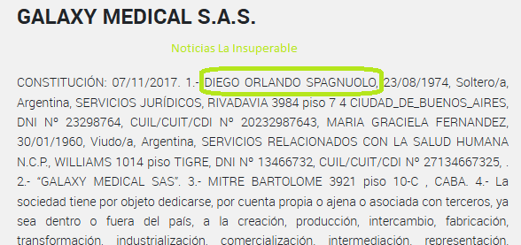 Se trata de GALAXY MEDICAL S.A.S., constituida a fines de 2017 junto a la doctora María Graciela Fernández, cuya actividad principal es la Distribución de equipos médicos y hospitalarios.