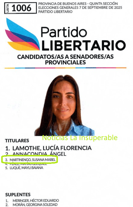 Dentro de los candidatos del Partido Libertario, un nombre pasó casi desapercibido en la Quinta Sección Electoral como tercera candidata a Senadora provincial: Susana Martinengo.