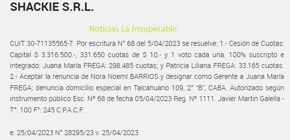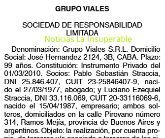 Todo normal hasta acá en el derrotero empresario. Pero hacia el año 2019, comenzaron ciertas maniobras «raras» en las empresas. Por lo pronto comenzaron los «prestanombres». En GRUPO VIALES, «por instrumento privado del 15/03/2019 renunció como gerente Luciano Ezequiel STRACCIA» y se lo reemplazó por una ignota Ramona Itatí González «con domicilio especial en la sede». Dos meses más tarde, se le cambia la denominación a la empresa, pasando a ser la razón social SHACKIE S.R.L.