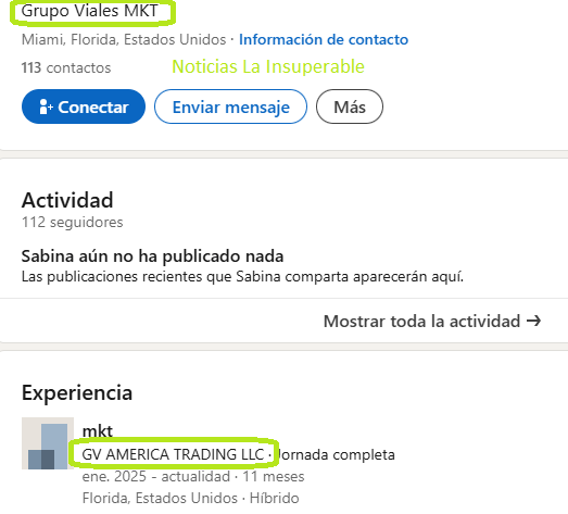 Por algunas cuestiones que seguramente deberán tener que ver con ahorro de dinerillos en impuestos, los hermanos Straccia han preferido no dejar su nombre en GRUPO VIALES, en Argentina, y manejar la empresa desde la offshore GV AMERICA TRADING LLC en Miami, que como demuestra esta publicación en Linkedin de un empleado, es exactamente lo mismo.