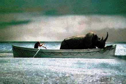 Luego del último naufragio (siempre hay un naufragio; siempre pensamos que es el último), me rescata un bote con un rinoceronte a bordo.