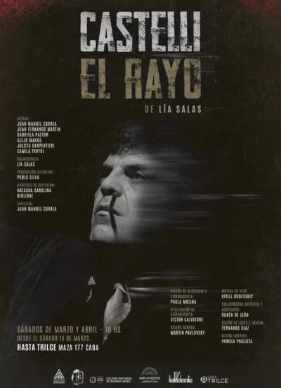 Castelli, el rayo seguirá en cartel durante lo que resta de marzo y todo abril en el espacio teatral Hasta Trilce de la Ciudad de Buenos Aires.