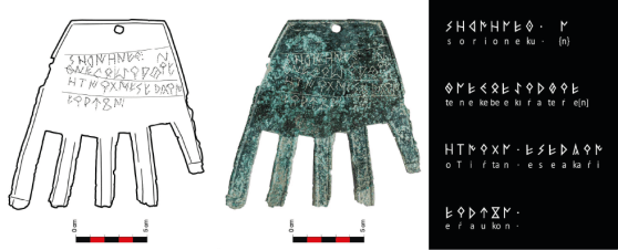 Hallado en Navarra, son cinco palabras inscritas en un amuleto de bronce con forma de mano que colgaba de la … Más