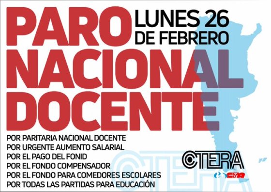 Se desarrollará este lunes en todo el país. La Confederación de Trabajadores de la Educación (Ctera) anunció un paro docente … Más
