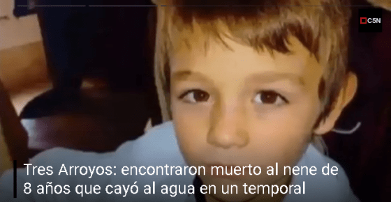 TEMPORAL EN TRES ARROYOS: Hallaron muerto al nene de 8 años que cayó al agua