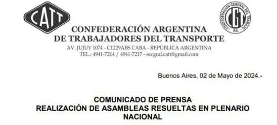 Así lo afirmó el secretario general adjunto de Confederación Argentina de Trabajadores del Transporte, Juan Carlos Schmid. El secretario general … Más
